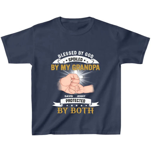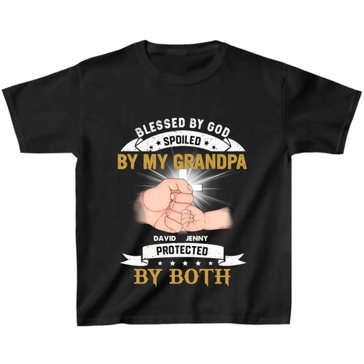 View full detailsPersonalized Grandkids Kid T-Shirt - Up to 5 Kids - Gift Idea For Grandma/Grandpa - Blessed By God Spoiled By My Grandpa Protected By Both