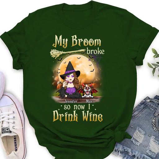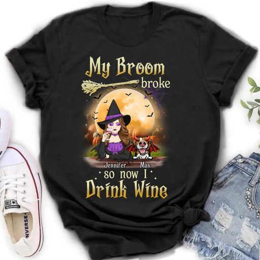 View full detailsPersonalized Witch Pet Mom T-shirt/Hoodie - Up to 3 Pets - Halloween Gift For Cat/Dog Mom - My Broom Broke So Now I Drink Wine