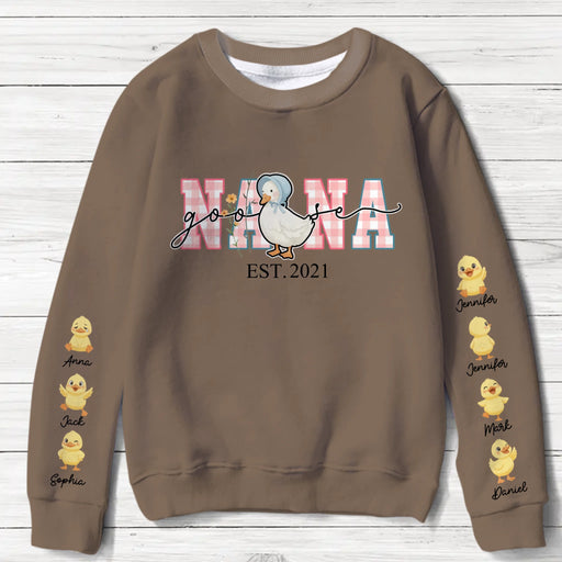 Personalized Nana Goose AOP T-shirt/ Sweater - Gift Idea For Grandma/ Nana/ Mother's Day - Nana with up to 7 Kids