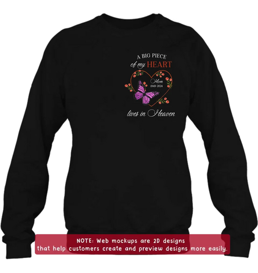View full detailsPersonalized Memorial Butterflies Embroidered T-Shirt/Sweater/Hoodie - Memorial Gift Idea For Family Member - A Big Piece Of My Heart Lives In Heaven