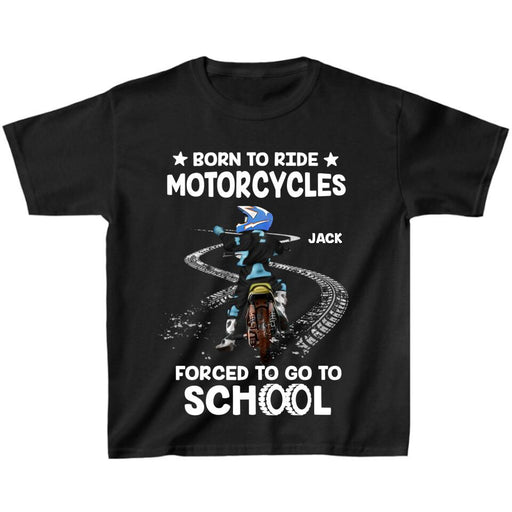 View full detailsPersonalized Biker Kid T-Shirt - Christmas/Birthday Gift Idea For Children - Born To Ride Motorcycles Forced To Go To School