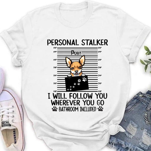 View full detailsPersonalized Dog T-Shirt - Personal Stalker I Will Follow You Wherever You Go Bathroom Include