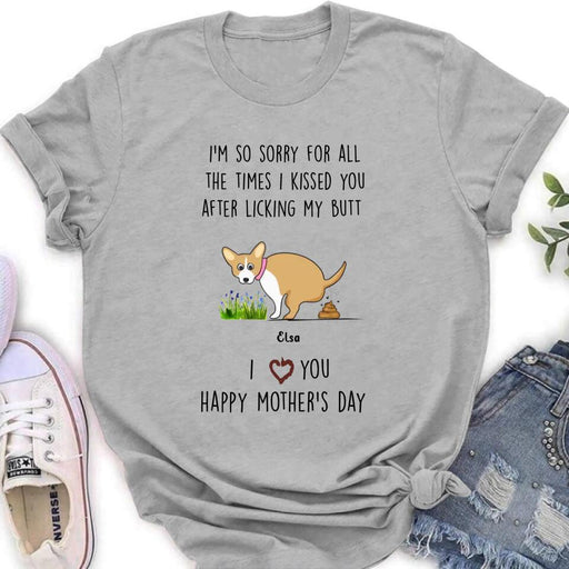 View full detailsPersonalized Funny Dog T-shirt/Long Sleeve/Sweatshirt/ Hoodie - Mother's Day Gift Idea For Dog Lover - Up to 4 Dogs - I'm So Sorry For All The Times I Kissed You After Licking My Butt