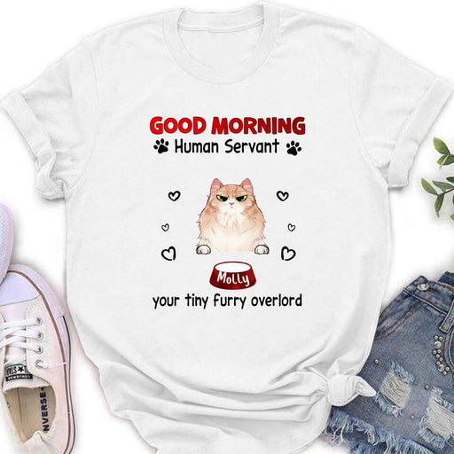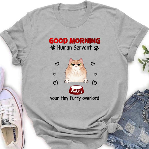View full detailsCustom Personalized Pet T-Shirt/Hoodie/Sweatshirt/Long Sleeve - Gift for Dog/Cat Lovers - Good Morning Human Servant Shirt - Up to 5 Pets