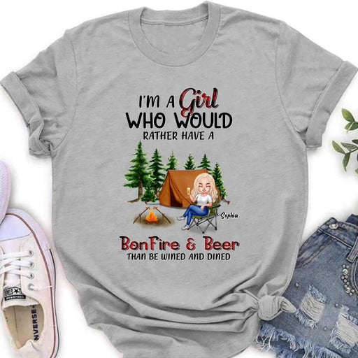 View full detailsPersonalized Camping Girl T-shirt/Long Sleeve/Sweatshirt/Hoodie - Gift Idea For Camping Lover - I'm A Girl Who Would Rather Have A Bonfire & Beer Than Be Wined And Dined