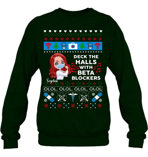 View full detailsPersonalized Nurse T-Shirt - Gift Idea For Nurse - Deck The Halls With Beta Blockers