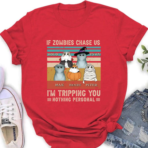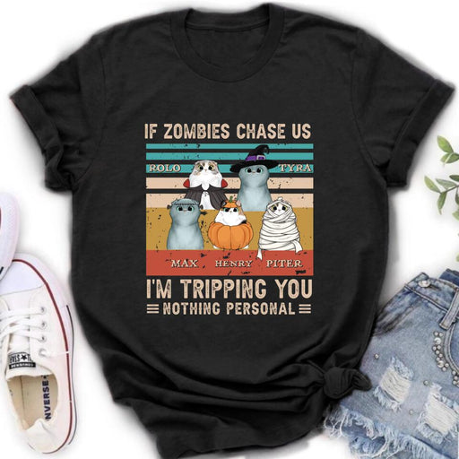 View full detailsCustom Personalized Pet Halloween Vintage Style T-Shirt/Hoodie/Sweatshirt/Long Sleeve - Gift for Dog Lovers, Cat Lovers - Up to 5 Pets - If zombies chase us, I'm tripping you