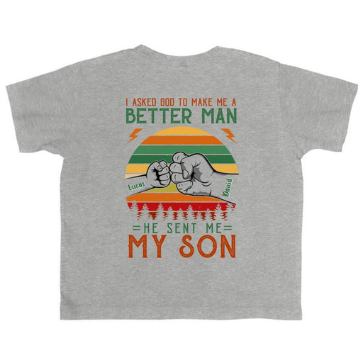 View full detailsPersonalized Father Kid T-Shirt - Up to 6 Kids - Gift Idea for Father's Day - I Asked God To Make Me A Better Man He Sent Me My Son