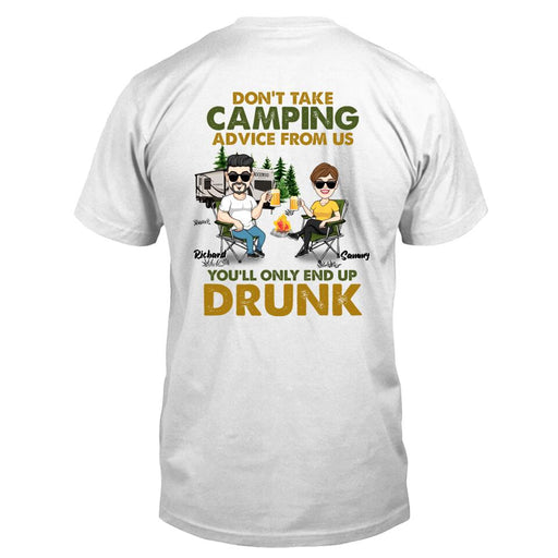 Personalized Camping Friends T-Shirt - Up to 7 Friends - Gift Idea For Friends/Camping Lovers - Don't Take Camping Advice From Us You'll Only End Up Drunk