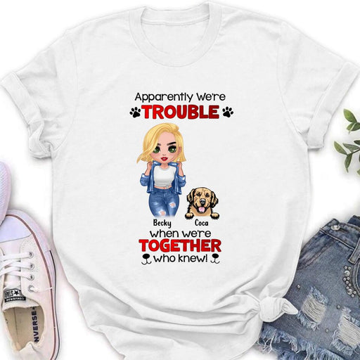 View full detailsPersonalized Dog Lady T-shirt/Long Sleeve/Sweatshirt/Hoodie - Gift Idea For Dog Lover - Up to 4 Dogs - Apparently We're Trouble When We're Together Who Knew