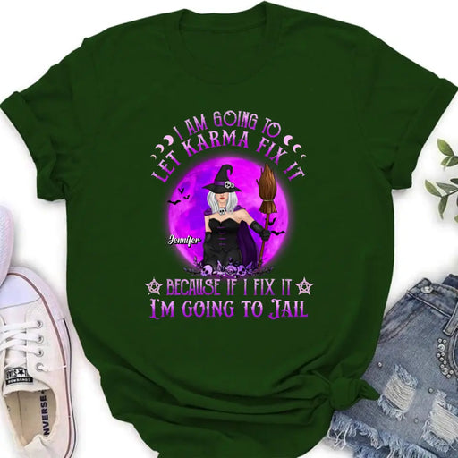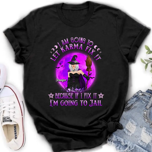 View full detailsPersonalized Witch Unisex T-shirt/ Sweatshirt/ Long Sleeve/ Hoodie - Gift Idea For Halloween/ Witch/ Wife - I Am Going To Let Karma Fix It