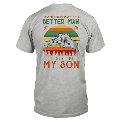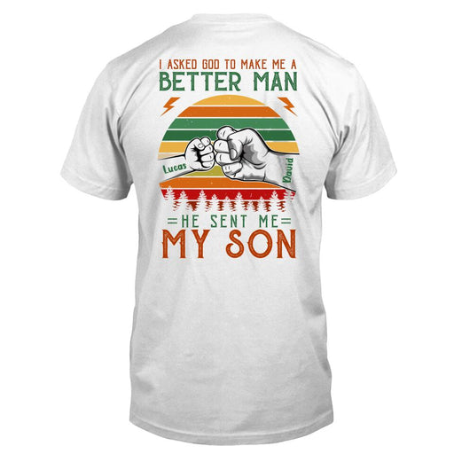 View full detailsPersonalized Father T-Shirt - Up to 6 Kids - Gift Idea for Father's Day - I Asked God To Make Me A Better Man He Sent Me My Son