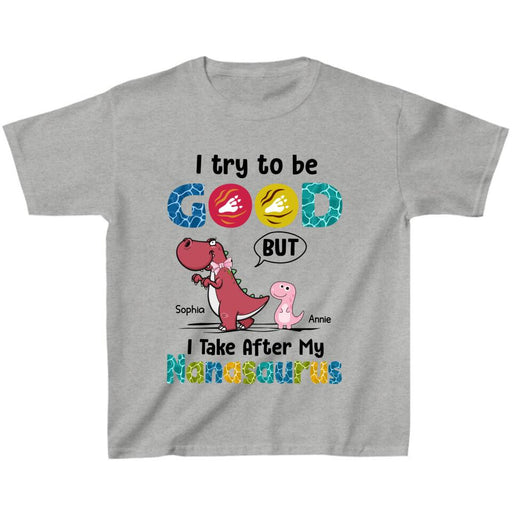 View full detailsPersonalized Dino Kid T-shirt - Gift Idea For Birthday - I Try To Be Good But I Take After My Nanasaurus