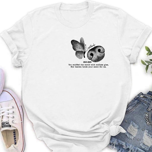 Keep your beloved dog’s memory close with this Personalized Memorial Dog Nose T-Shirt, a heartfelt gift for dog lovers. Featuring a touching dog n...