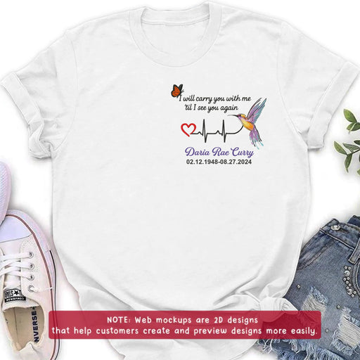 View full detailsPersonalized Memorial Embroidered T-Shirt/Sweater/Hoodie - Memorial Gift Idea - I Will Carry You With Me 'til I See You Again