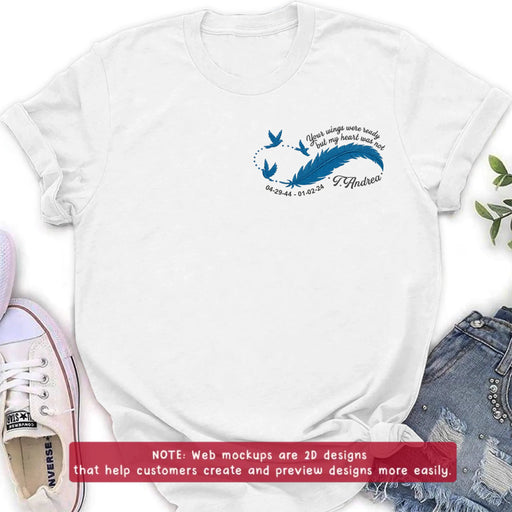 View full detailsCustom Personalized Memorial Embroidered T-Shirt/ Sweater/ Hoodie - Memorial Gift Idea - Your Wings Were Ready But My Heart Was Not