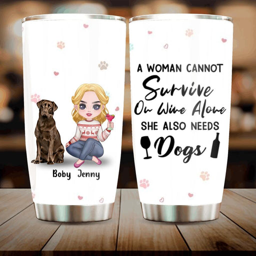 View full detailsPersonalized Dog Mom Front Tumbler - Up to 5 Dogs - Gift Idea For Dog Lover - A Woman Cannot Survive On Wine Alone She Also Needs Dogs