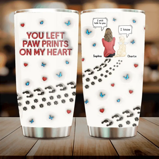 View full detailsPersonalized Dog Mom Tumbler - Memorial Gift Idea For Dog/Cat/Rabbit Lover - Up to 4 Pets - You Left Paw Prints On My Heart