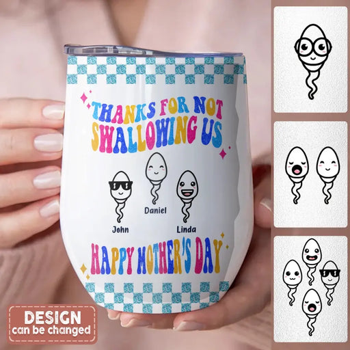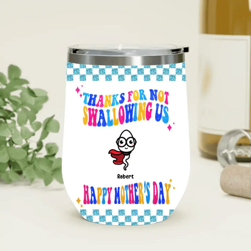 View full detailsPersonalized Mother Wine Tumbler - Up to 8 Children - Gift Idea For Mother's Day - Thanks For Not Swallowing Us Happy Mother's Day