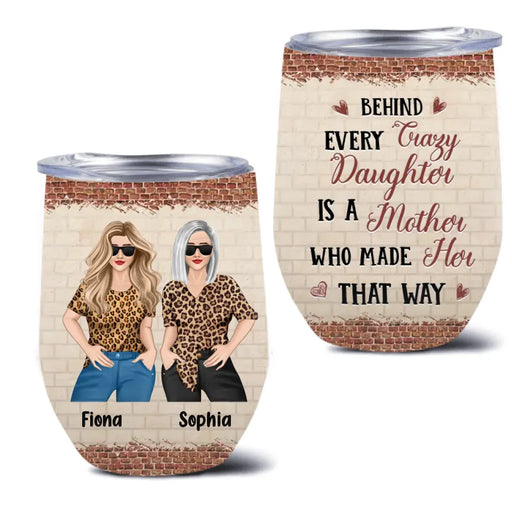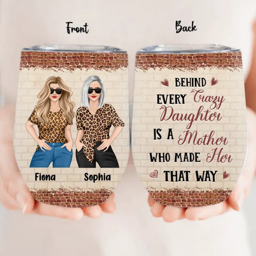 Personalized Mom & Daughter Wine Tumbler - Gift Idea For Mom/Mother's Day From Daughter - Behind Every Crazy Daughter Is A Mother Who Made Her That Way