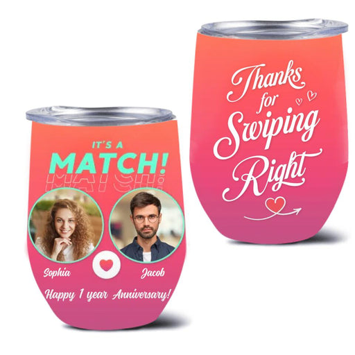 View full detailsPersonalized Dating App Wine Tumbler - Gift Idea For Couples/ Valentines - It's A Match Thanks For Swiping Right