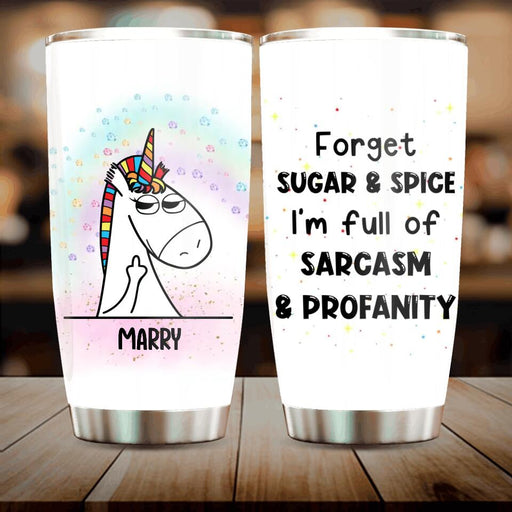 View full detailsPersonalized Unicorn Friends Tumbler - Up to 5 Unicorns - Gift Idea For Friends/Besties - Forget Sugar & Spice I'm Full Of Sarcasm & Profanity