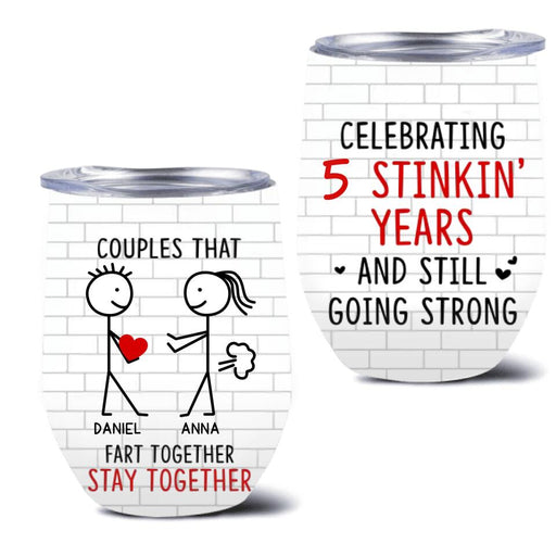 Personalized Fart Couple Wine Tumbler - Couples That Fart Together Stay Together - Valentines/Anniversary Gift Idea For Couple/Husband & Wife