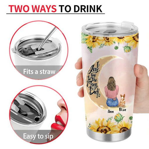 View full detailsPersonalized Dog Mom Sunflower Tumbler - Gift For Dog Lover With Up to 4 Dogs - I Love You To The Moon & Back