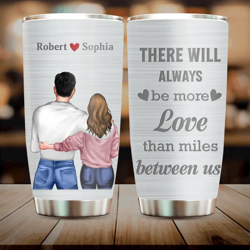 Personalized Couple Tumbler - Gift Idea For Couple/Him/Her/Valentine's Day - There Will Always Be More Love Than Miles Between Us