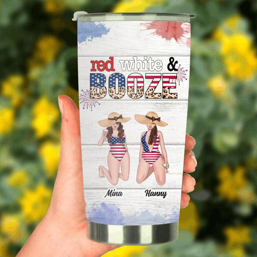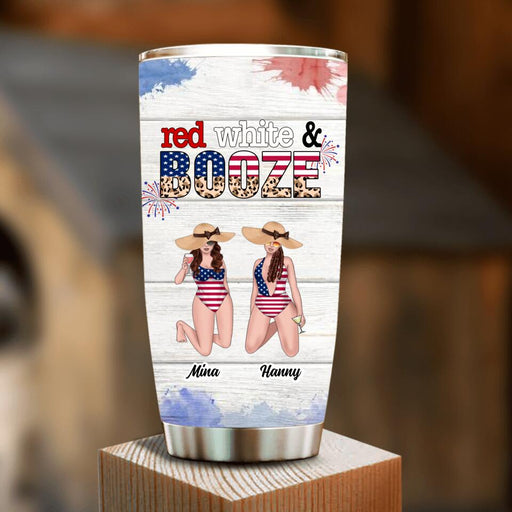 Personalized Friends Tumbler - Up to 6 People - Gift Idea For Friends/Sisters/Independence Day - Red, White And Boozed