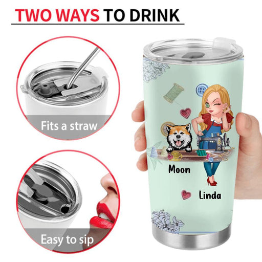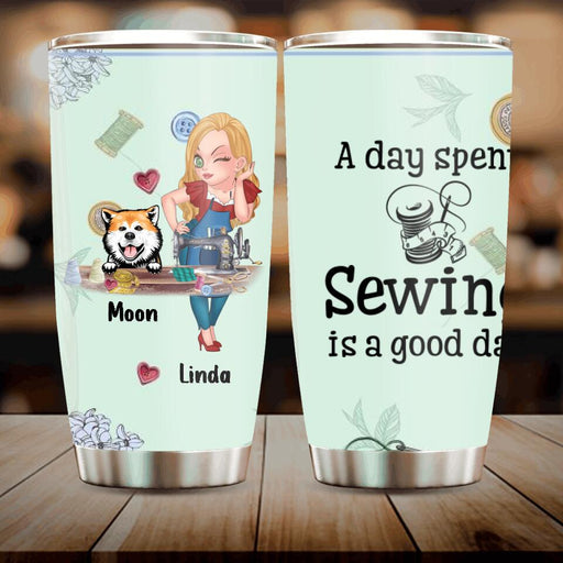 View full detailsCustom Personalized Sewing Tumbler - Gift Idea For Sewing Lovers With Up To 2 Dogs/Cats - A Day Spent Sewing Is A Good Day