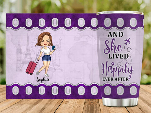 Custom Personalized Traveling Girl Tumbler - Gift For Girl/ Traveling Lovers - And She Lived Happily Ever After