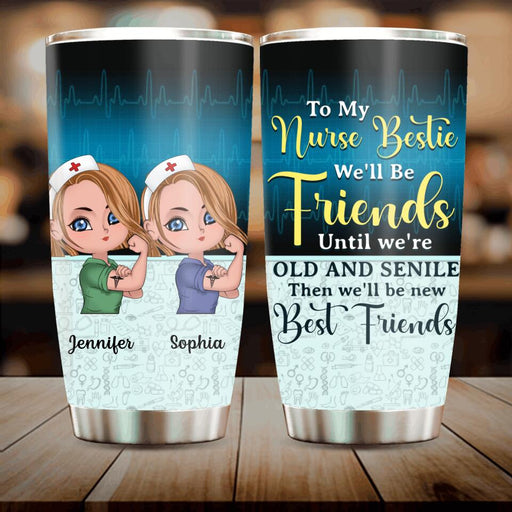 View full detailsCustom Personalized Nurse Friends Tumbler - Up to 4 Girls - Gift Idea For Coworkers, Friends, Nurses - To My Bestie We'll Be Friends Until We're Old And Senile
