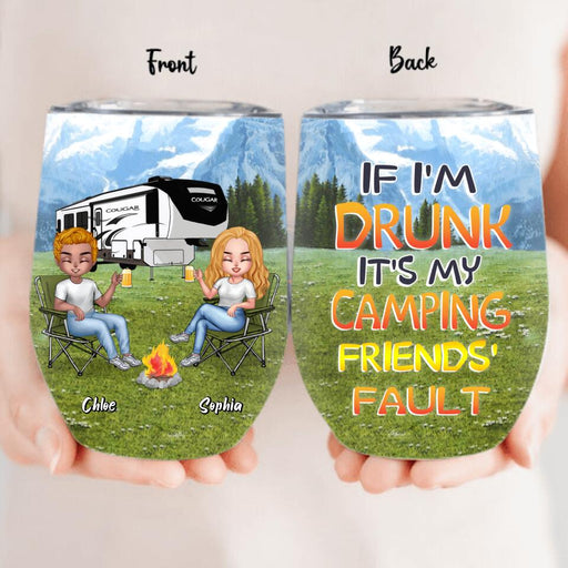 View full detailsPersonalized Camping Friends Wine Tumbler - Up to 7 People - Gift Idea For Friends/Camping Lover - If I'm Drunk It's My Camping Friends' Fault
