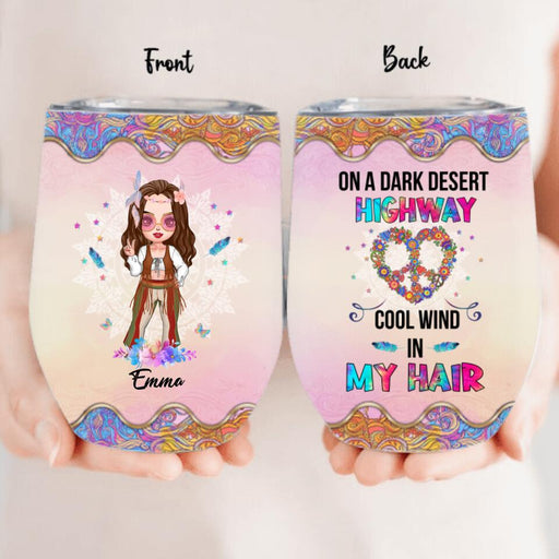 Personalized Hippie Wine Tumbler - Best Gift For Hippies - On A Dark Desert Highway Cool Wind In My Hair