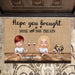 Personalized Hope You Brought Wine Couple Doormat - Up to 4 Dogs - Gift Idea For Dog Lover