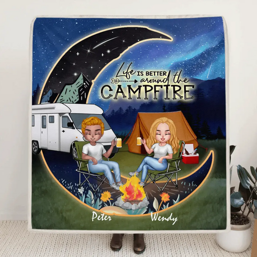 View full detailsPersonalized Camping Fleece Blanket/Quilt/Pillow Cover - Best Gift For Camping Family/Couple/Single Parent/Solo - Full Option - Up to 4 Kids and 3 Pets - Life Is Better Around The Campfire