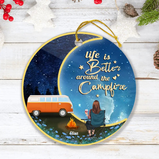 View full detailsPersonalized Camping Moon Ornament - Man/Woman/Couple - Best Gift For Camping Lover - Life Is Better Around The Camfire