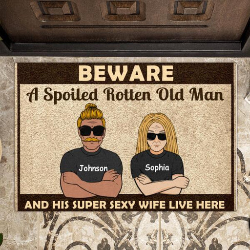 View full detailsPersonalized A Spoiled Rotten Husband Doormat - Gift Idea For Couple - Beware A Spoiled Rotten Old Man And His Super Sexy Wife Live Here
