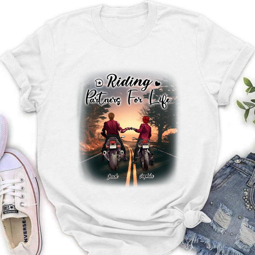 View full detailsCustom Personalized Motorcycle Couple Shirt - Gift Idea For Couple - Riding Partners For Life
