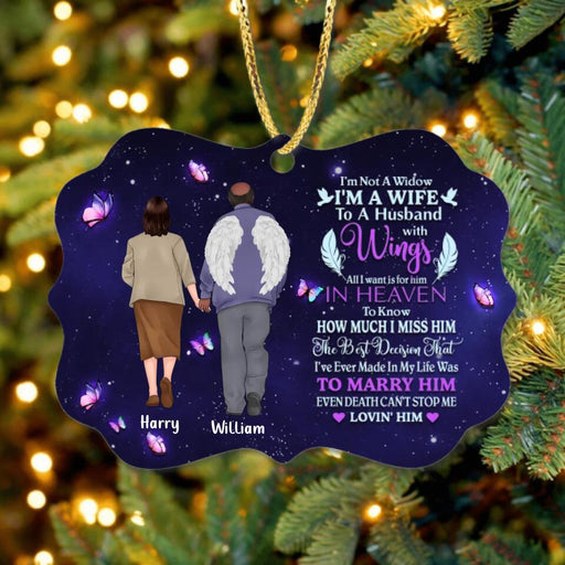 Custom Personalized Memorial Old Couple Rectangle Wooden Ornament - Memorial Gift Idea For Couple - I'm Not A Widow, I Am A Wife To A Husband With Wings