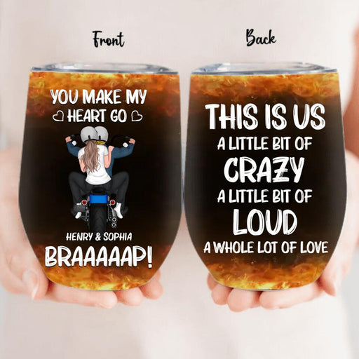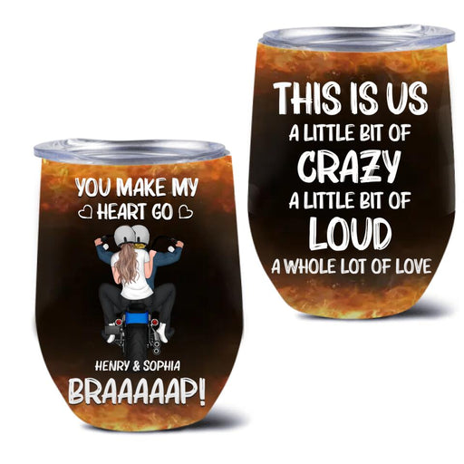 View full detailsPersonalized Motorcycle Couple Wine Tumbler - Gift Idea For Couple/Motorbike Lovers - You Make My Heart Go Braaaap!