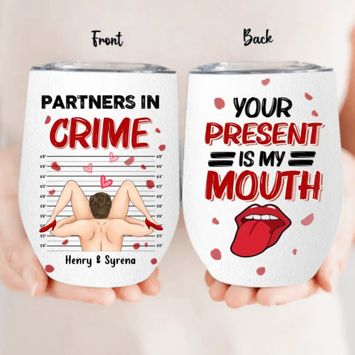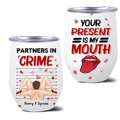 View full detailsPersonalized Partners In Crime Wine Tumbler - Your Present Is My Mouth - Gift Idea For Her/ Couple/ Anniversary