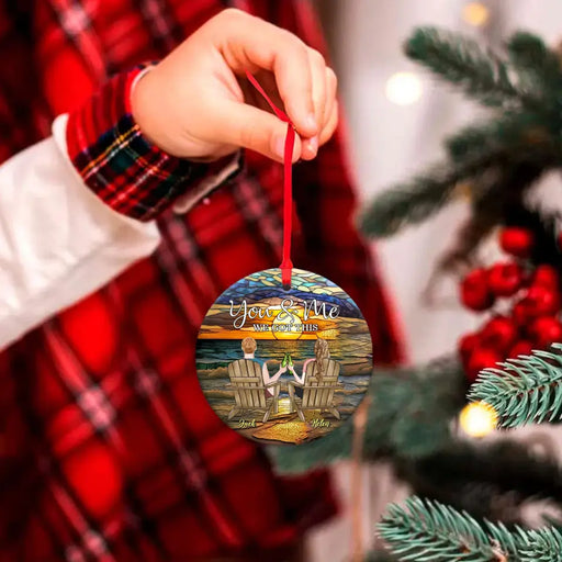 View full detailsCustom Personalized Couple Sitting At Beach Circle Wooden Ornament - Gift Idea For Couple/ Anniversary - You And Me We Got This