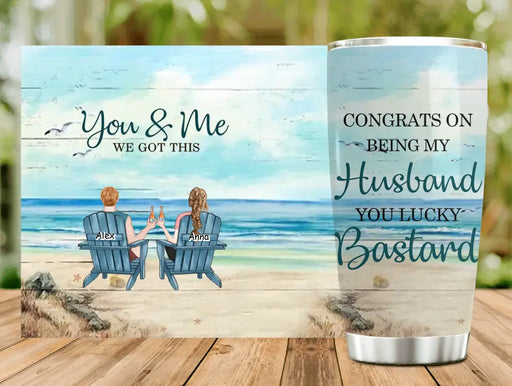 View full detailsCustom Personalized Couple Tumbler - Gift Idea for Couple/Him/Her - Anniversary Gift - Congrats On Being My Husband You Lucky Bastard