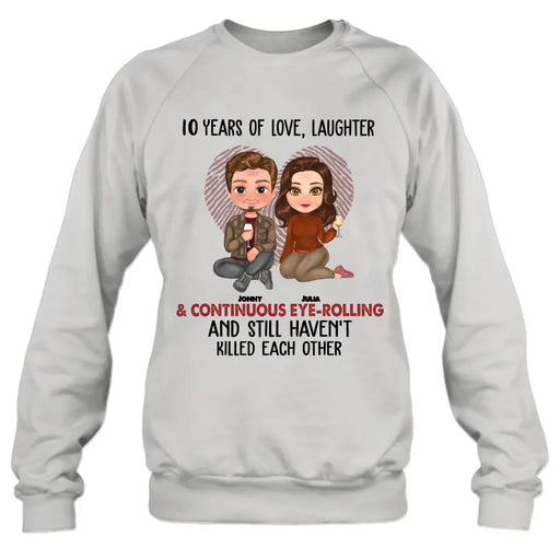 View full detailsCustom Personalized Couple Shirt/Hoodie - Anniversary/Wedding/Christmas Gift Idea for Couple - Years Of Love Laughter & Continuous Eye-rolling And Still Haven't Killed Each Other
