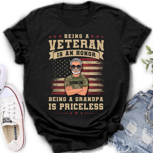 Custom Personalized Veteran T-shirt/ Long Sleeve/ Sweatshirt/ Hoodie - Gift Idea For Veteran/ Papa/ Grandpa - Being A Veteran Is An Honor Being A Grandpa Is Priceless