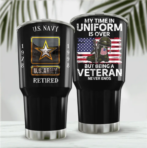 View full detailsPersonalized Retired Veteran Tumbler - Father's Day Gift Idea for Veteran - My Time In Uniform Is Over But Being A Veteran Never Ends