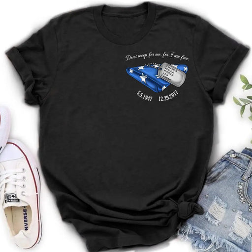 View full detailsPersonalized Memorial Shirt/Hoodie - Memorial Gift Idea For Family Member/Father's Day/Veteran's Day - Don't Weep For Me, For I Am Free