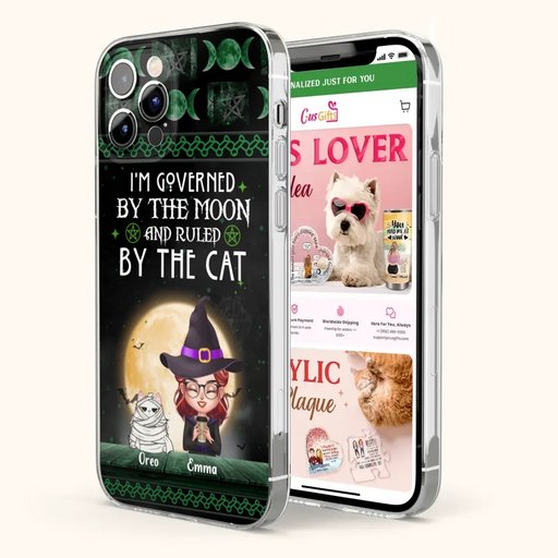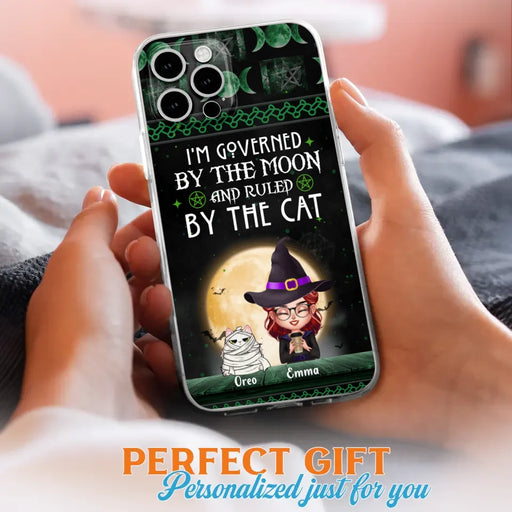 Custom Personalized Cats Witch Phone Case - Halloween Gift For Cat Lover - Governed By The Moon, Ruled By The Cats - Case For iPhone And Samsung
